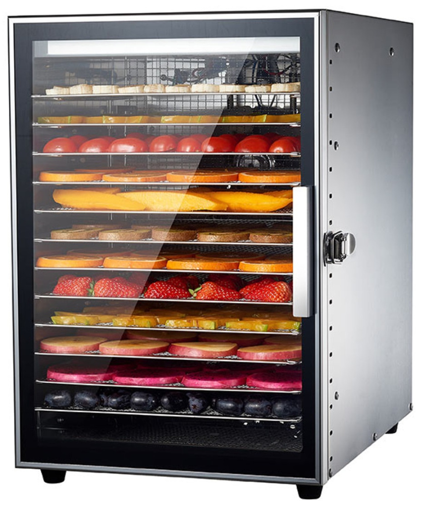 Дегидратор Airhot FD-12 GLASS-B используется на предприятиях общественного питания, торговли, пищевых производствах, а также в домашних условиях для сушки овощей и фруктов, травянистых растений, ягод, грибов и орехов. Модель оснащена сенсорным управлением, стеклянной дверцей и подсветкой. Материал корпуса - нержавеющая сталь.