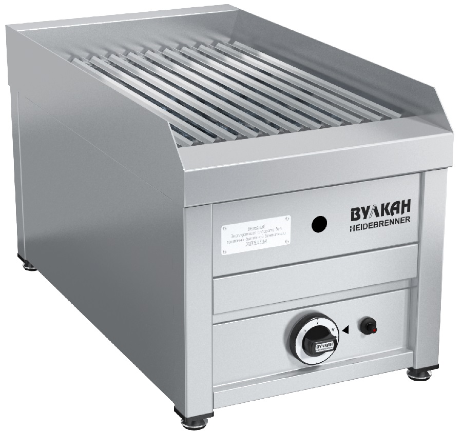 Лавовый гриль Вулкан BPD 01L «Кизимен» предназначен для жарки различных продуктов на предприятиях общественного питания и торговли. В процессе приготовления блюда получают такой же вкус, аромат и внешний вид, словно их готовили на открытом огне. Вулканическая лава равномерно распределяет жар по продукту; лавовый камень впитывает лишнюю жидкость и исключает появление неприятных запахов в процессе готовки. Модель оснащена газ-контролем, пьезоподжигом, запальной горелкой и защитным бортом от разбрызгивания. Специальная V-образная решетка задерживает излишки жира, выделяющиеся при жарке.