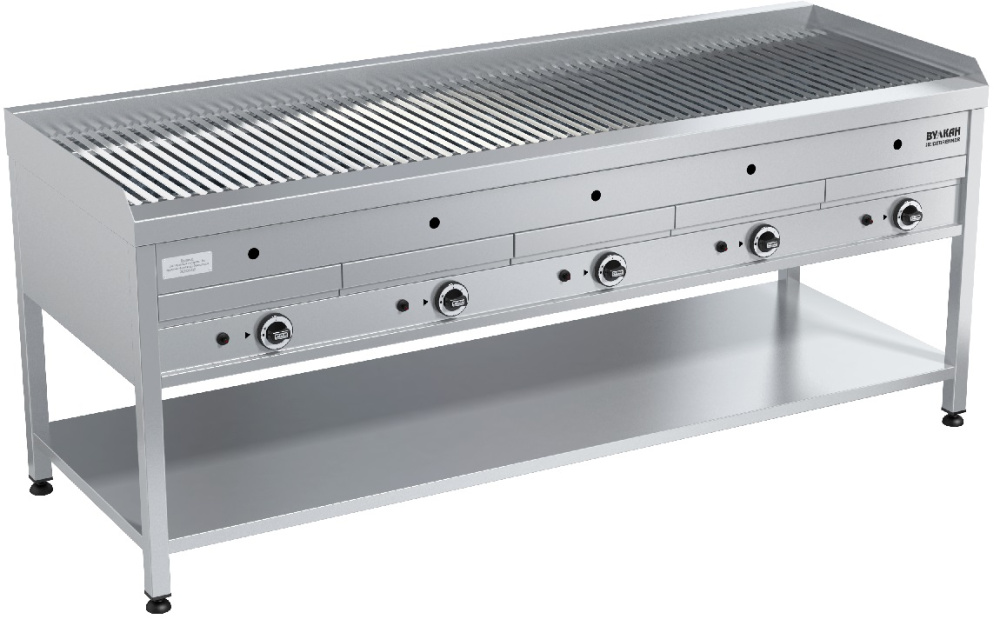 Лавовый гриль Вулкан BPD 05L «Хангар» предназначен для жарки различных продуктов на предприятиях общественного питания и торговли. В процессе приготовления блюда получают такой же вкус, аромат и внешний вид, словно их готовили на открытом огне. Вулканическая лава равномерно распределяет жар по продукту; лавовый камень впитывает лишнюю жидкость и исключает появление неприятных запахов в процессе готовки. Модель оснащена газ-контролем, пьезоподжигом, запальной горелкой и защитным бортом от разбрызгивания. Специальная V-образная решетка задерживает излишки жира, выделяющиеся при жарке.