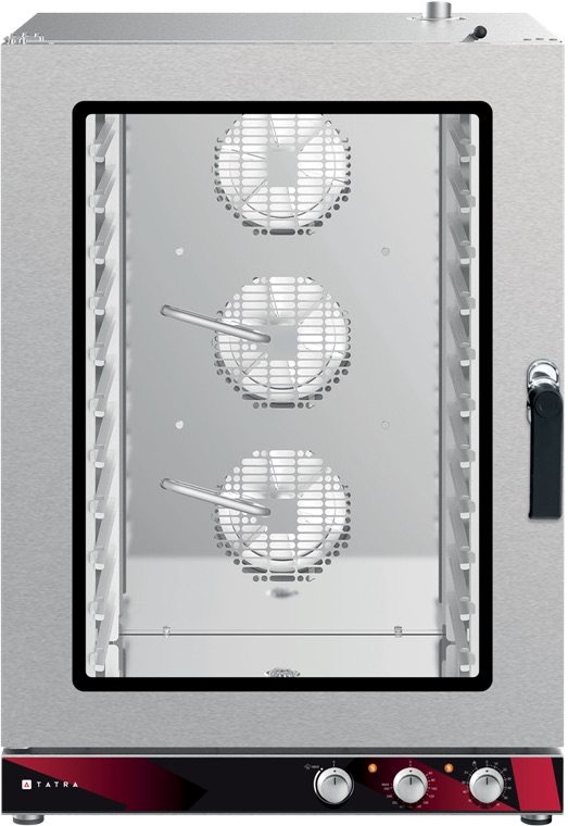 Пароконвектомат Tatra TC12M1L предназначен для обжаривания, приготовления на пару, бланширования, запекания и других видов тепловой обработки продуктов на предприятиях общественного питания и торговли. Модель оснащена 3 реверсивными вентиляторами, электромеханической панелью управления, подсветкой камеры. Модель эффективно сочетает в себе функции конвекционной печи, жарочного шкафа, пароварки, плиты и сковороды.