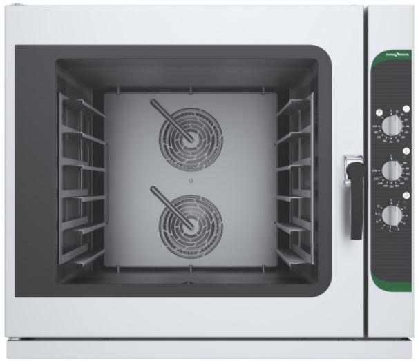 Пароконвектомат Пищевые Технологии ПР-06М-Э редназначен для приготовления широкого спектра блюд, выпечки хлебобулочных и кондитерских изделий в гостиничном и ресторанном бизнесе, на предприятиях пищевой промышленности, общественного питания и торговли. Модель оснащена жарочной камерой с 2 кольцевыми трубчатыми электронагревателями (ТЭНами) и 2 электродвигателями с вентиляторами в задней стенке, левосторонней герметично запираемой дверью с механическим замком, 4 устойчивыми опорами, электромеханической панелью управления с 3 круговыми поворотными регуляторами и 3 сигнальными светодиодными индикаторами. Корпус выполнен из высококачественной стали с термоизоляцией.