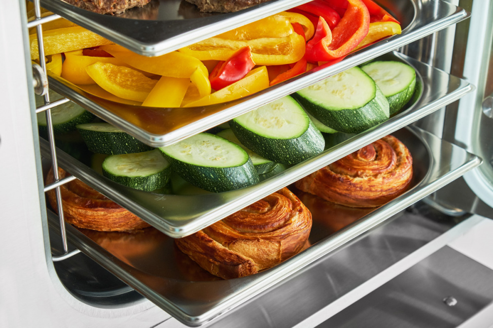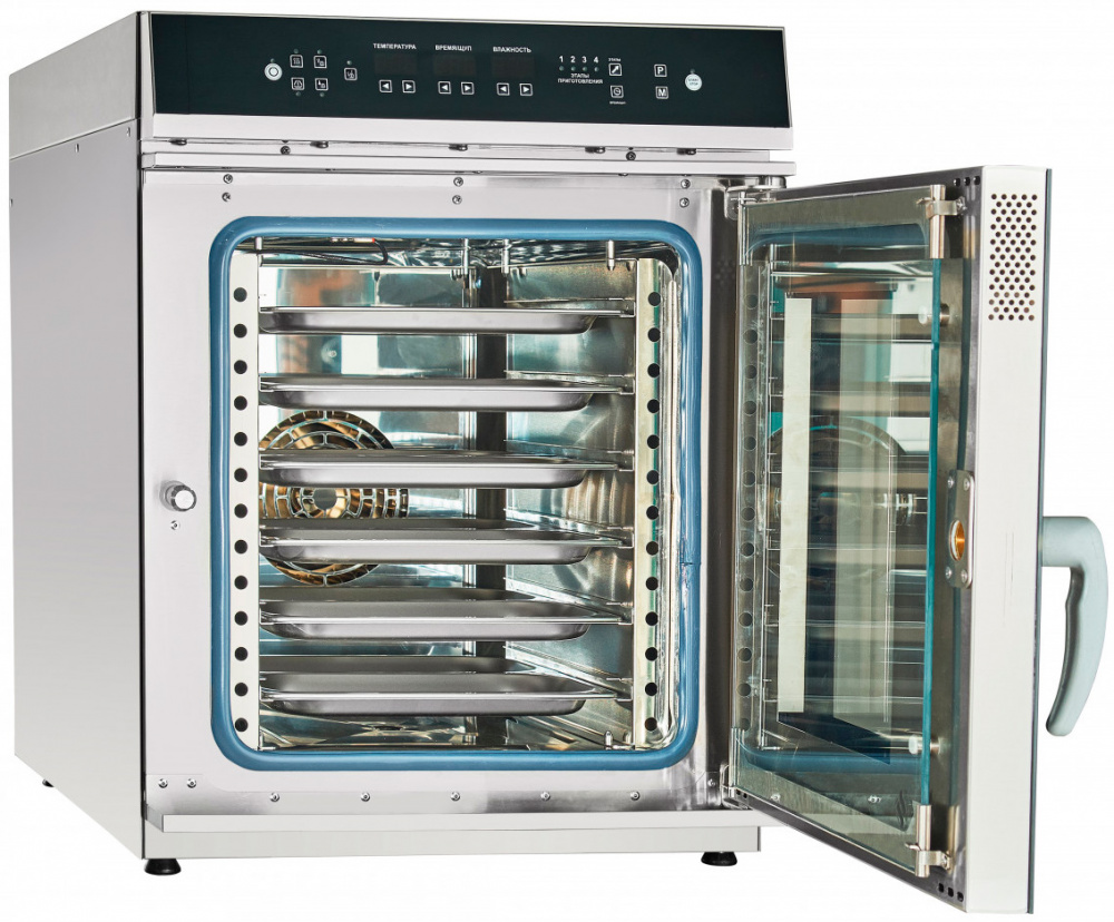Благодаря небольшим габаритным размерам пароконвектомат подходит для помещений с ограниченным пространством и размещается на столе или подставке.