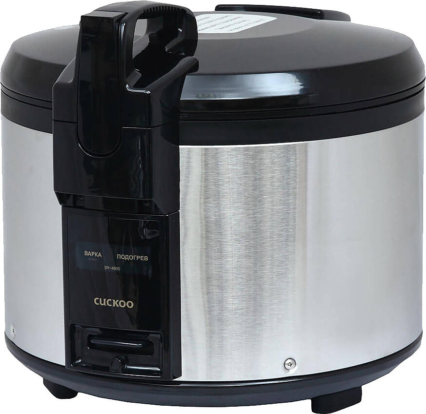 Рисоварка Cuckoo SR 4600 используется на предприятиях общественного питания и торговли для приготовления, хранения и поддержания в разогретом виде всех видов круп и рис для суши. Модель оснащена механической панелью управления. Функция подогрева позволяет использовать рисоварку в качестве термоса. Корпус и крышка выполнены из нержавеющей стали.