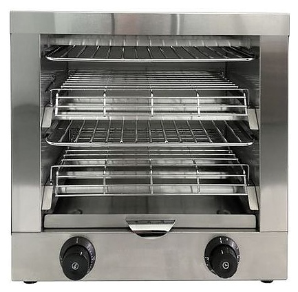 Тостер EKSI EST-2 используется на предприятиях общественного питания, торговли и пищевых производствах для поджарки и подогрева ломтиков хлеба. Модель оснащена механическим управлением, таймером, 9 кварцевыми трубками и поддоном для крошек. Материал корпуса - высококачественная нержавеющая сталь.