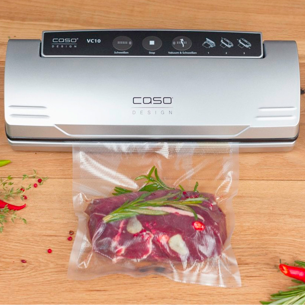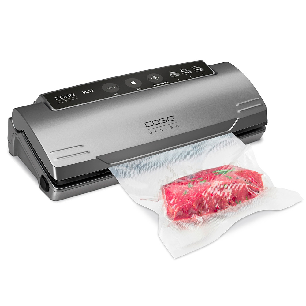 Вакуумный упаковщик CASO VC 10 PlusEdition используется на предприятиях пищевой промышленности, общественного питания и торговли для герметичной упаковки полуфабрикатов и готовых блюд в пакетах или контейнерах, что способствует продлению их срока хранения. Модель оснащена электронным контроллером температуры запаивания и кнопкой  "Стоп". Материал корпуса - пластик.